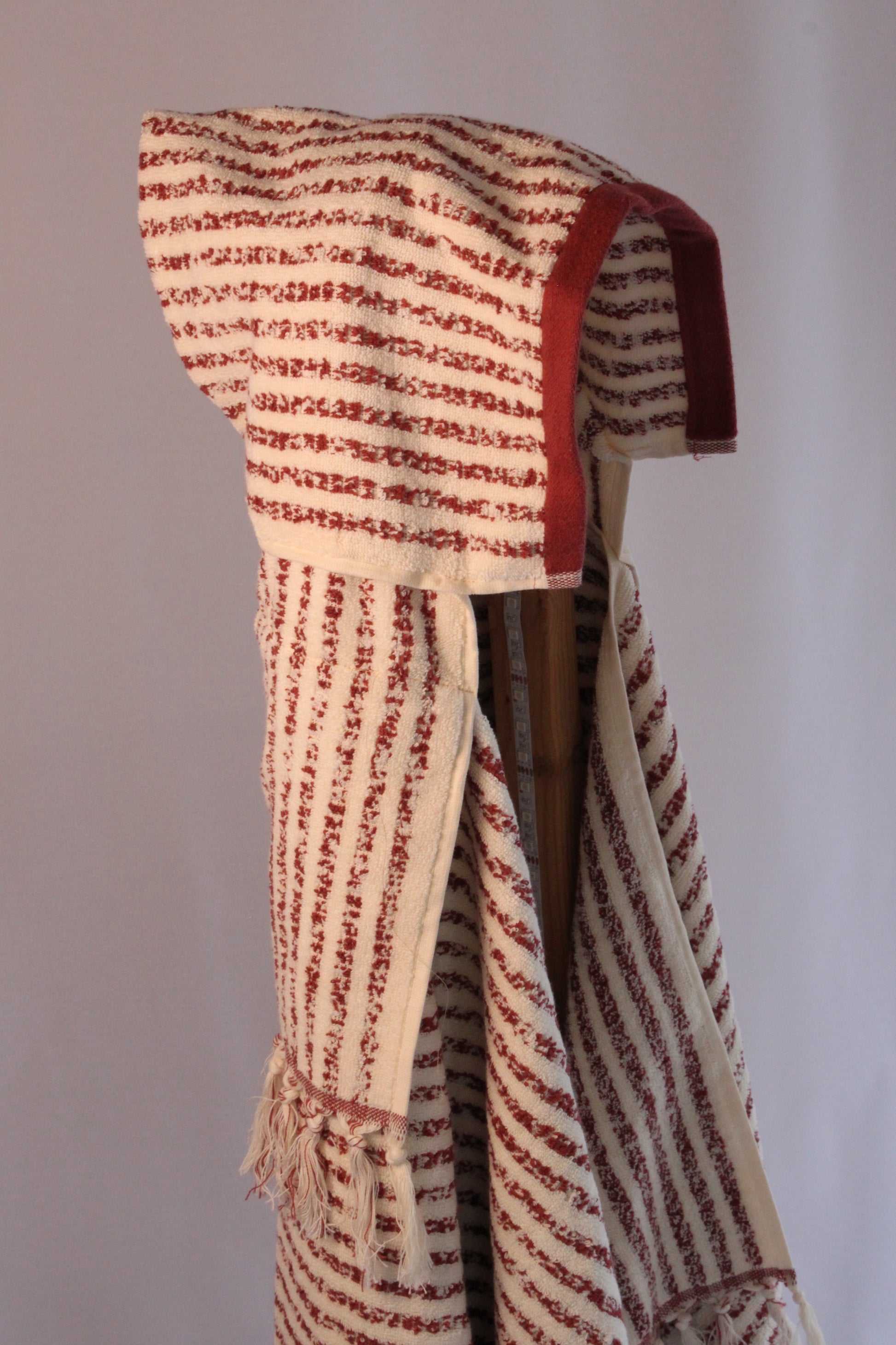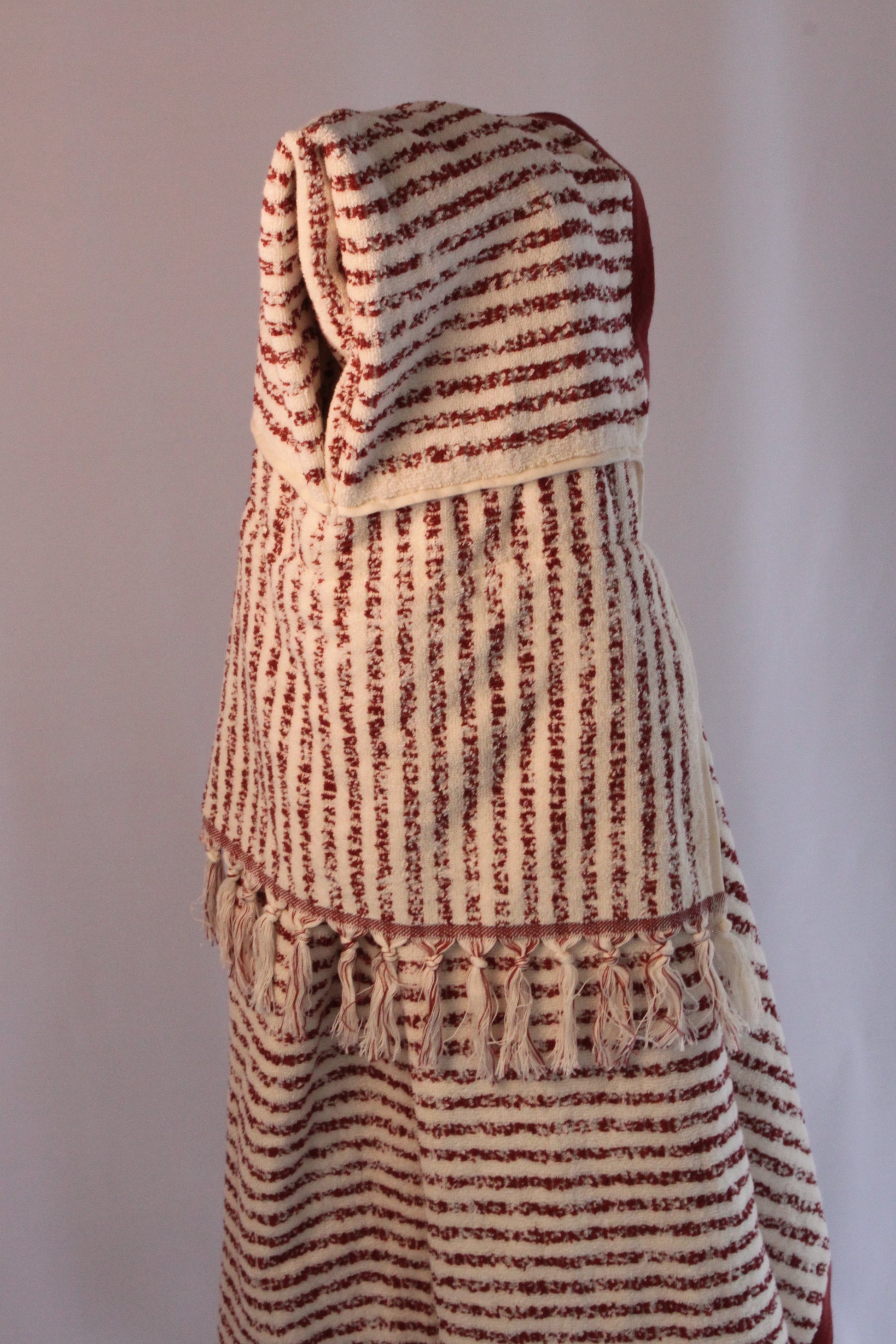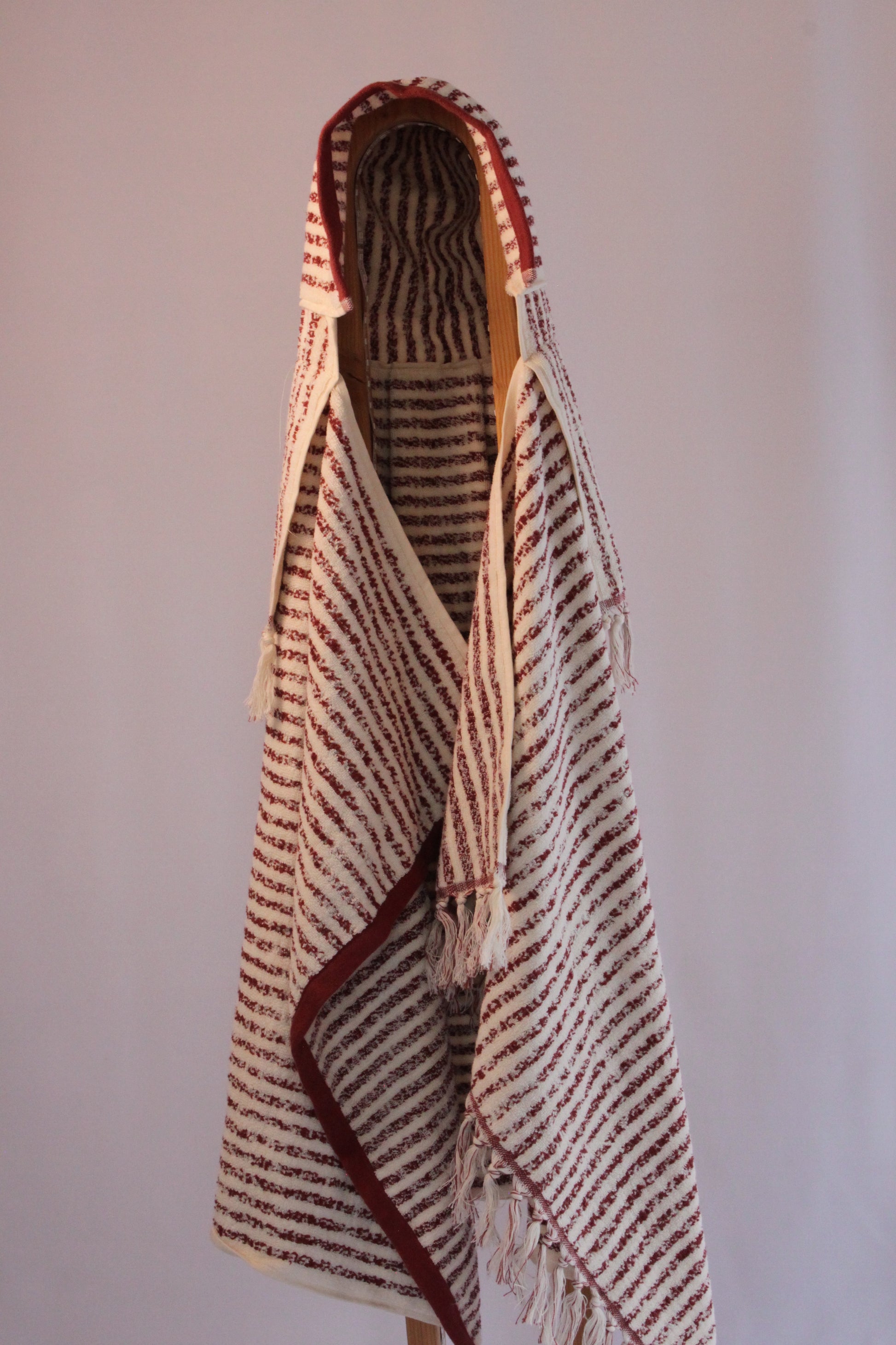 This hand sewn baby towel with tassel accents is ready to swaddle and warm up your little ones for years to come. 100% cotton.